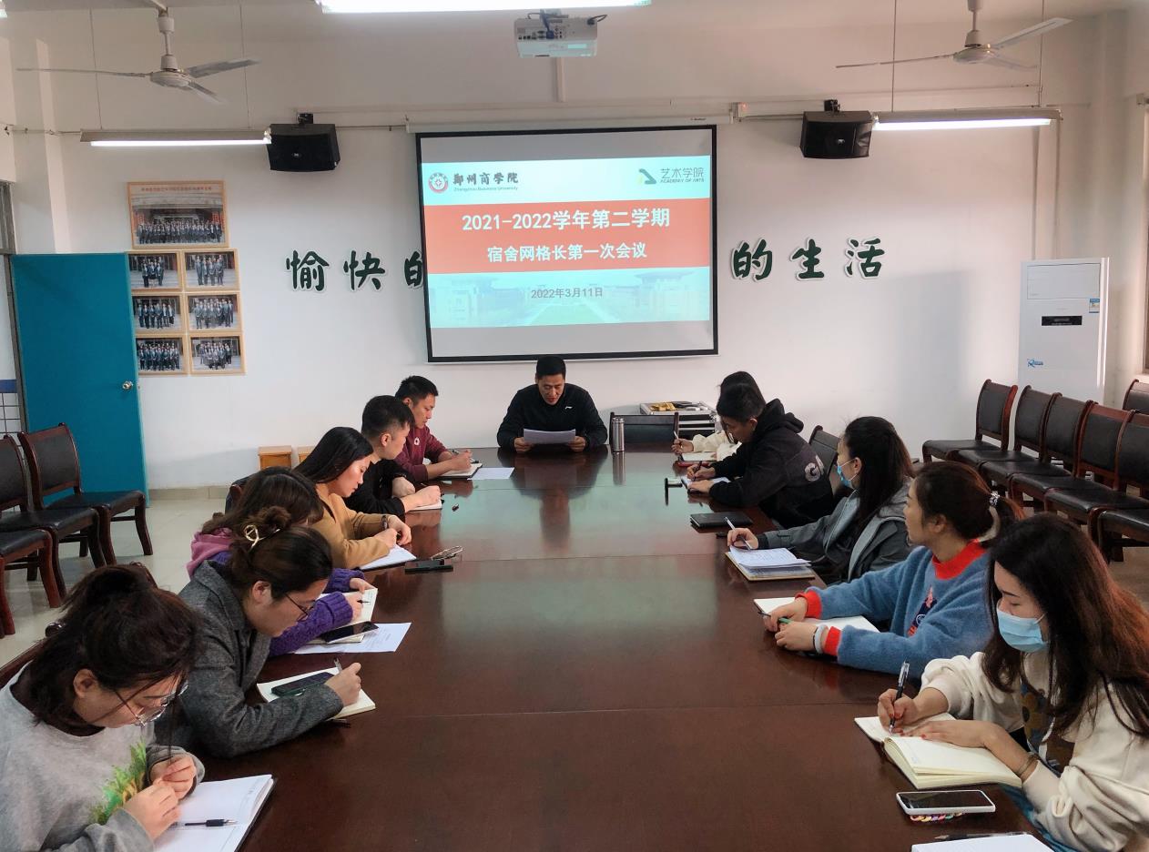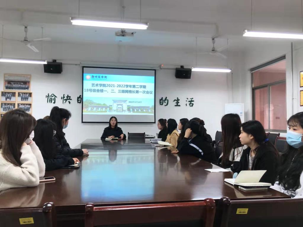 为进一步优化宿舍网格化管理,持续深入贯彻落实“六化一家园建设”,稳步推进宿舍网格化管理工作,3月11日上午,艺术学院在艺术大楼二楼会议室召开2021-2022学年第二学期网格长第一次会议。艺术学院党委周余书记、团委刘健书记和全体辅导员参加会议。