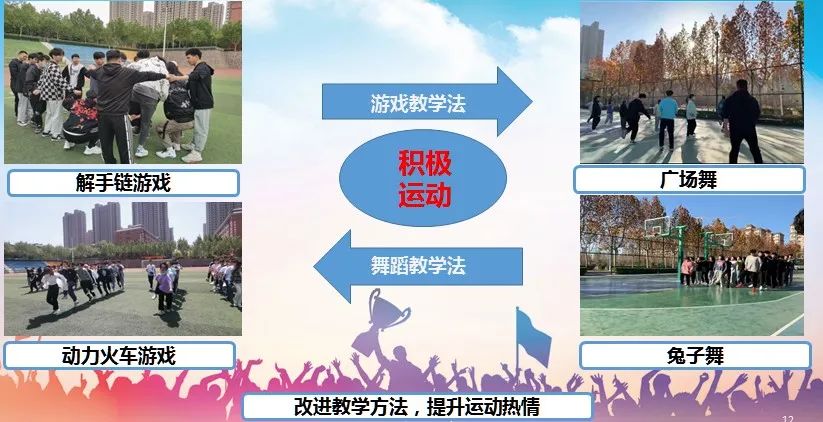 作为辅导员,按照学院身体素养提升工程实施方案,依托学院足球队、篮球队、田径队、夜跑团、暴走团、体育俱乐部六大平台,积极鼓励学生参与其中。一年来组织各类院队集训20余次;组织学生集体夜跑、暴走等体育锻炼8次;组织团体活动6次。以体育游戏为载体增强学生身体素质,拉近彼此距离,较少矛盾隔阂,促进班级和谐。作为兼职体育教师,积极深化体育课程改革,丰富自身教学方法和手段,通过游戏教学法、舞蹈教学法等学生兴趣度高的教学方法,提升教学效果和同学们的上课热情,受到同学们的一致好评,学生评教成绩名列前茅。
