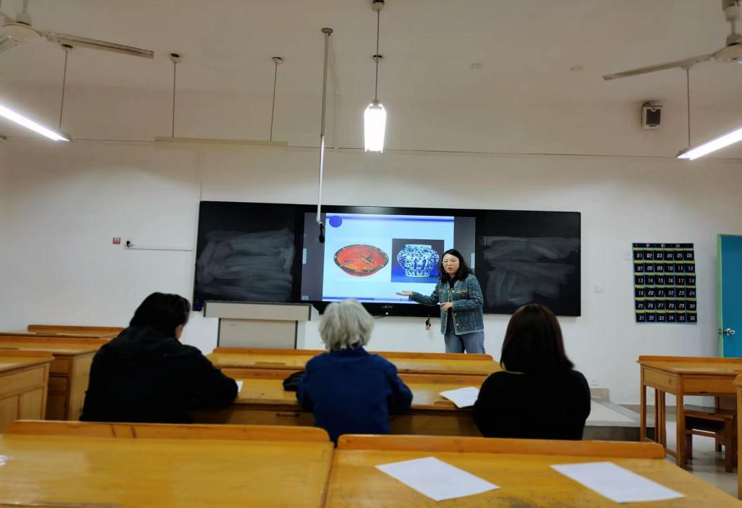 在公开课上,王瑶老师担任pg电子官网特色课程《河洛文化艺术》的主讲教师,主要讲授第四章巩义古代雕塑艺术第二节陵墓寺庙,主要内容为了解宋陵的来龙去脉、石窟寺和慈云寺的历史与成就,让学生感受巩义建筑雕塑艺术的魅力,使学生体验到河洛文化的厚重感;肖凯伦老师主要讲授了第三章巩义陶瓷艺术,使学生了解巩义陶瓷的历史及成果,懂得白瓷与唐三彩的制作步骤,能清晰分辨陶与瓷的区别;李小亚老师主要讲授成角透视,引导学生分析成角透视的形成原理,总结成角透视的规律与作图特点。
