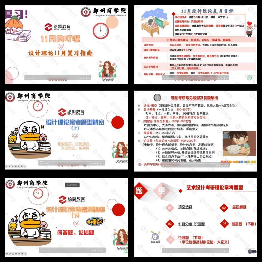 沙老师首先分享了“设计理论复习指南”,接下来通过上下两期“设计理论常考题型解密”为同学们分析了艺术设计理论中常见考研题型及答题结构,分享经验、传授方法,为同学进行了系统而又全面的精细化考研指导。通过高质量公开课,使大家专业技能、应试技巧、考研信心等方面得到全面提升,同学们收获满满。