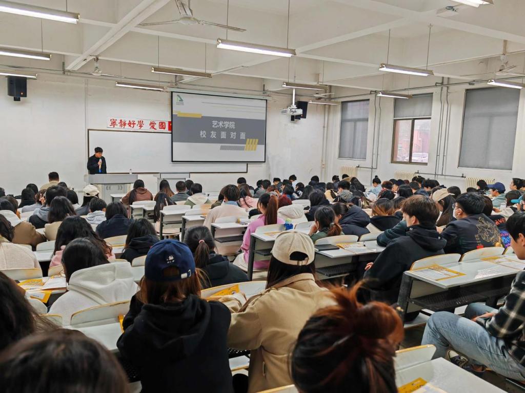 为了进一步加强校友建设,更好发挥优秀校友的榜样引领作用,帮助同学们明晰职业规划、了解就业选择,激发学生青春奋斗的热情,全面助力学生成长成才。4月24日下午,艺术学院成功举办“我与校友面对面”优秀校友讲坛活动,会议由就业专员贺萌老师主持。