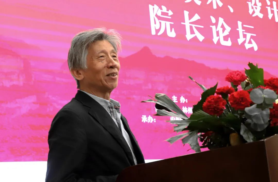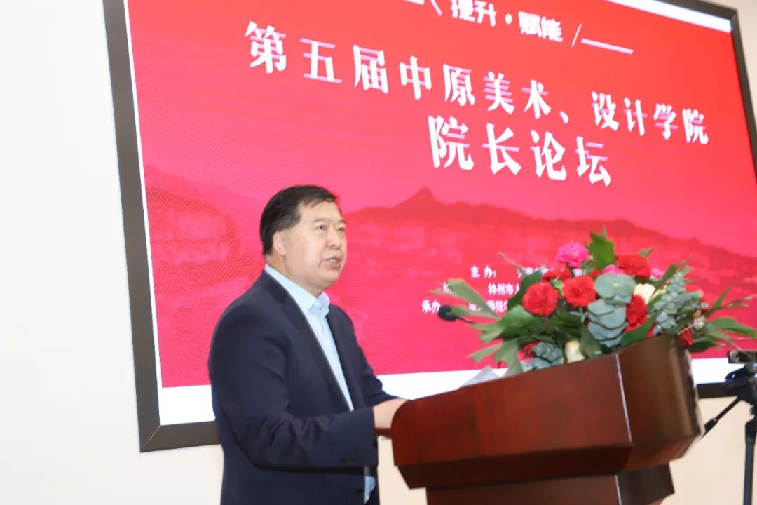 中国美术家协会主席、中央美术学院院长范迪安发表主旨演讲,并提出:身为新时代美育工作者,要努力做到“三个加强”,即加强学科建设,提高育人水平;加强专业能力提升,服务地方社会发展;加强科研创作,让厚重的中原文化通过美术设计绚烂绽放。