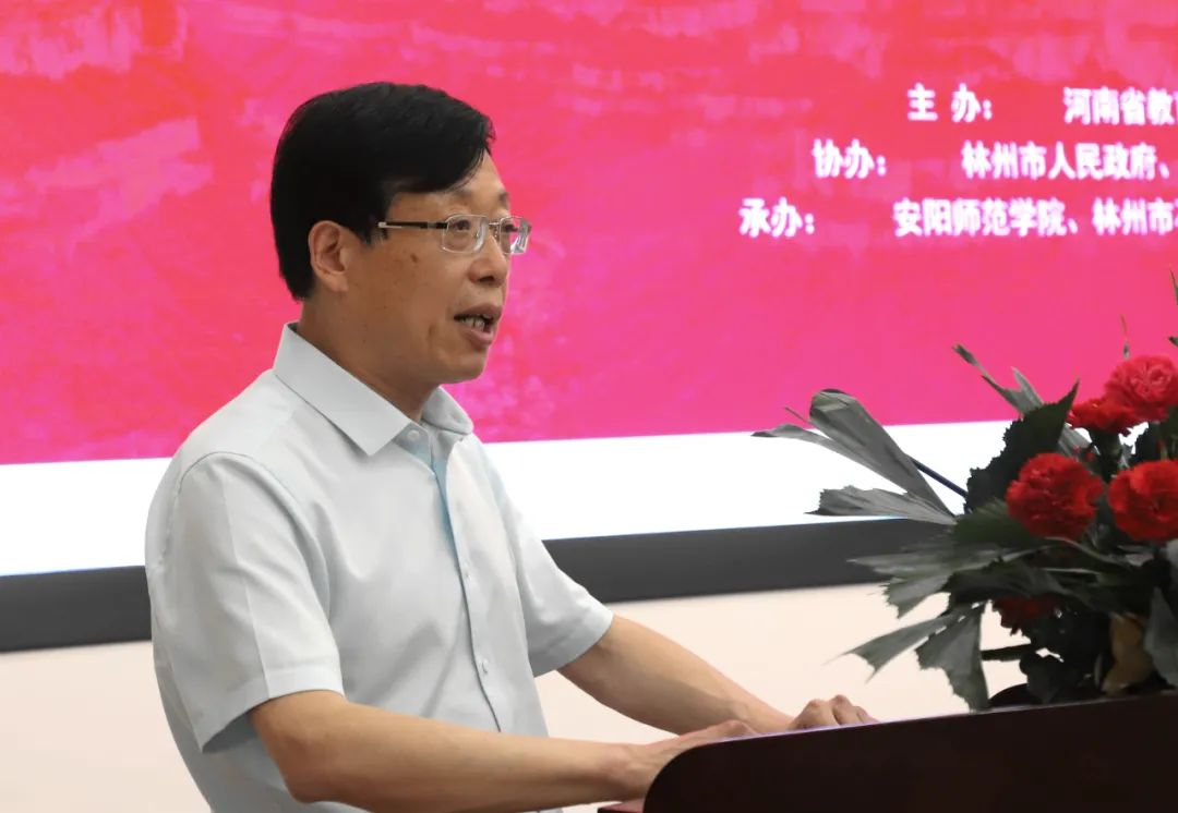 林州市人民政府代表田元飞,安阳师范学院党委书记纪多辙,河南省文联副主席、河南省美术家协会主席刘杰,河南日报社党委委员、副总主编张学文,为开幕式致辞。
