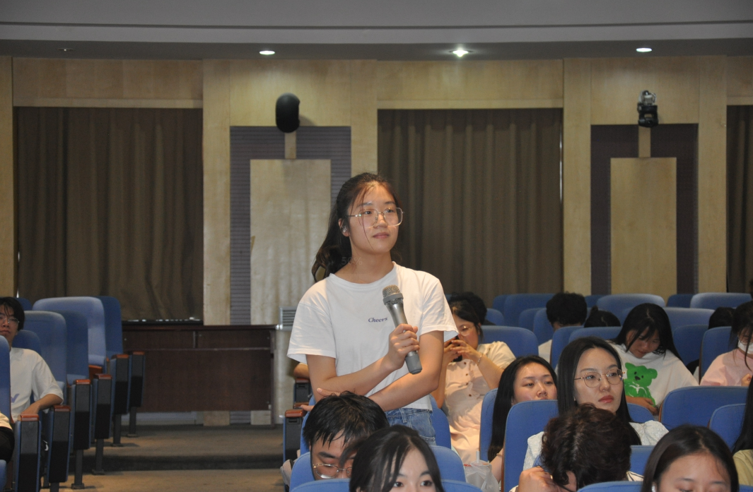 活动伊始,贺萌老师代表全体师生对优秀校友任婧娴的到来表示热烈欢迎,并向与会人员简要介绍了任婧娴的工作经历及个人成就。任婧娴校友首先表达了对母校与老师的感恩之情,接下来以“砥砺初心·筑梦基层”为主题,结合亲身经历分享工作求索之旅,带领同学们感受深耕基层的收获和乐趣。她用朴实的语言、感人的事迹深深地感染了与会人员,并号召同学们在未来道路上继续发挥“勤俭 朴实 自力 更生”的校训精神,坚持以兴趣为导向,面对挫折不言弃,永远保持对工作的积极态度和对自己事业的无限热情。