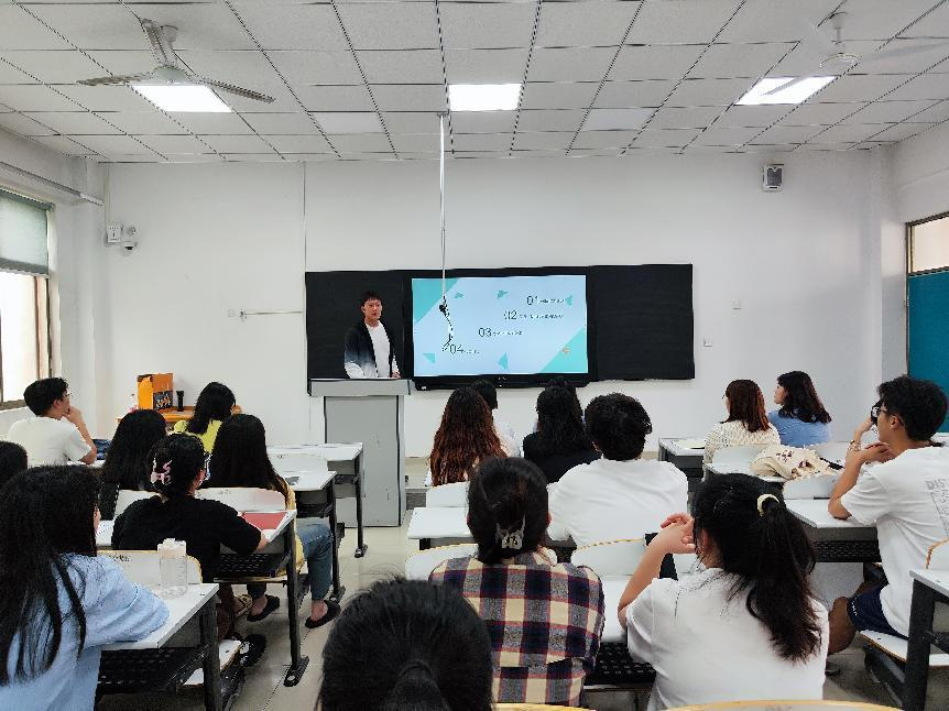接下来,四名高分学生依次进行了分享。王明阳同学考研英语取得了81分的好成绩,他着重对考研英语的复习与规划进行了讲解,并且毫无保留的分享了他复习英语的过程,还分享了大量有针对性的学习资料。他认为拿下英语最关键的是拿下单词。王倩茹同学以381分的优异成绩成功上岸洛阳师范学院,她分享了专业跨考的经验,并且以风趣幽默的风格分享了很多备考的资源平台,并且鼓励大家一定要坚持学习,坚持就是胜利。袁海铭同学考研成绩389分,他按照时间顺序很细致的讲解了每个不同时间段该如何复习、怎么复习,使同学们对考研复习的规划有了更加清晰的认知。李琪琛同学以优异的成绩考进了中原工学院,她对院校相关的资料、考情、历年真题等进行详尽的分享,她还鼓励同学们一定要把心态调整好,要相信自己一定能够成功上岸。