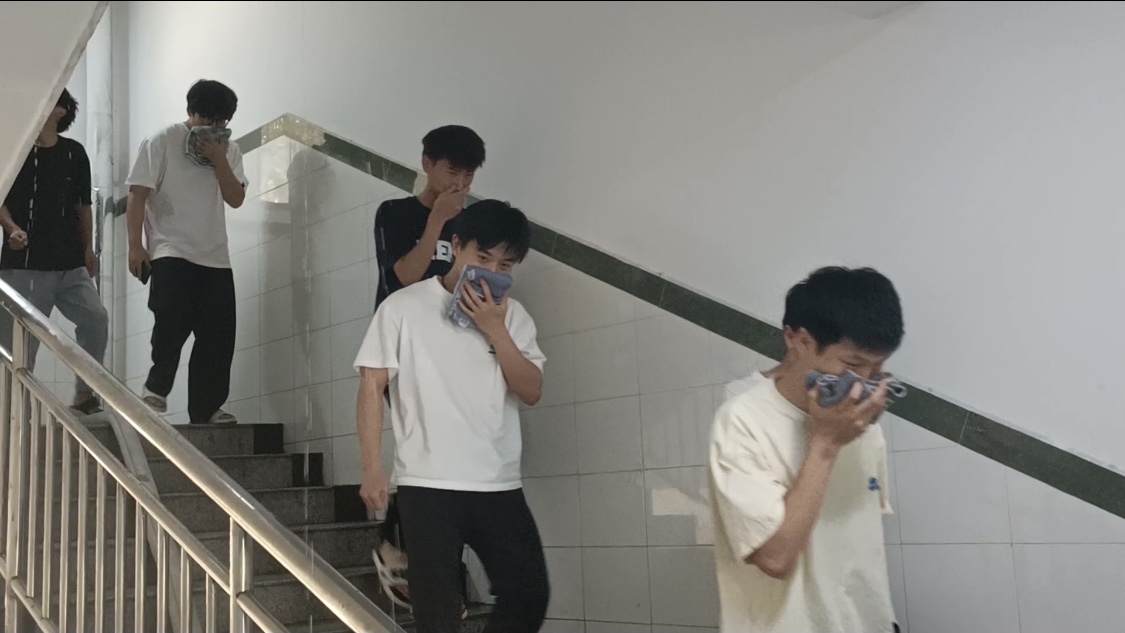 下午4点,随着警报声响,全体人员迅速投入到消防疏散逃生演习活动中,“弯腰、低头、湿毛巾捂口鼻,一律靠右,顺墙边弯腰向前移动”同学们在各部门工作人员的指挥下,迅速、有序疏散至15号公寓前。各班学生到宿舍楼前集中点名,辅导员清点学生人数,逐级上报。最终经核实,应撤离人数与宿舍楼中实际人数相符,演习活动取得圆满成功。