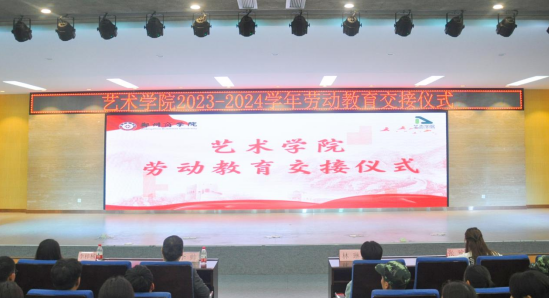 劳动教育是铸就社会主义新型人才的必要条件,是提升高校立德树人成效的基本途径。为深入贯彻学校“三大教育、两大工程”,培养23级新生崇尚劳动、尊重劳动、热爱劳动的观念,养成良好的劳动习惯。9月28日上午,我院于自力楼三楼报告厅举办2023级新生劳动教育交接仪式。艺术学院党委书记李帅、团委书记殷晴波、劳卫科林琳、23级新生辅导员老师、22级学生代表及23级新生代表共同参加。