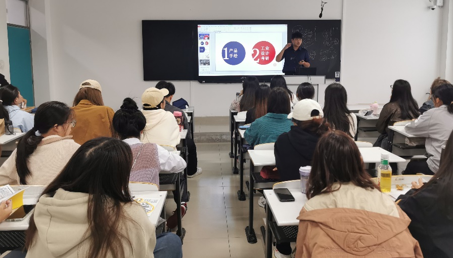 为了切实提高学生的专业手绘能力,邀请了清华大学产品专业硕士、产品手绘经验丰富的程业帅老师为学生详细梳理了产品手绘快题的得分技巧,并现场示范产品透视技法与学生互动答疑。