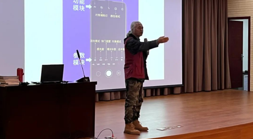讲座开始,吴兴力教授首先通过书籍向同学们讲述了学习摄影的理念、基本构图原理和如何提高审美的方法,并向同学们讲述光学、色彩构成等方面的知识。生活不缺少美而是缺少发现美的眼睛,希望同学们通过本次活动能够更善于发现生活中的美好。随后,吴兴力教授结合自身三十余年的摄影创作经历,娓娓道来,用大量的优秀摄影作品向大家展示了摄影的乐趣及专业性。同时,还结合实用的拍摄经验和摄影理论技巧等,针对风光、建筑、花卉、夜景及人像拍摄题材讲解了手机实用拍摄技巧,综合解析了手机短视频拍摄要点、视频运镜技巧与镜头语言。