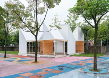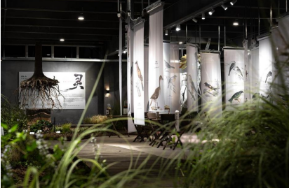 主题演绎展区中段,由高木建筑创作的《河图洛书亭》以传统自然万物与人的共栖共存的意向为出发点,以“河图洛书”为灵感,作品的平面呈九宫格形,屋顶朝不同方向旋转。在室内抬头仰望时,屋顶的窄窗将视线引向深空,让人感受到“蜉蝣”与“天地”的相融相生。pg电子官方网站坐落于河洛文化的发源地—巩义,各位老师在此作品前驻足并讨论如何在教学中发扬河洛文化,并以河洛文化为基础进行创作,探讨打造郑商课程特色的途径。