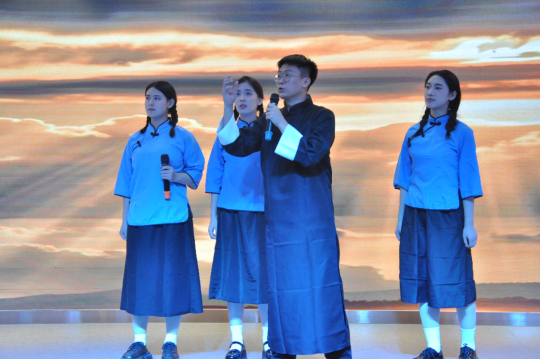 大会最后,为更好营造浓厚的阅读氛围,艺术学院充分发挥学生特色,进行创新节目话剧《破晓》表演,通过精彩的话剧演出引导广大青年学生学党史、强信念、跟党走。演员们的激情表演也深深吸引了台下的观众,让本次读书分享会“纪念红色经典,传承红色精神”的主题更加深入人心。