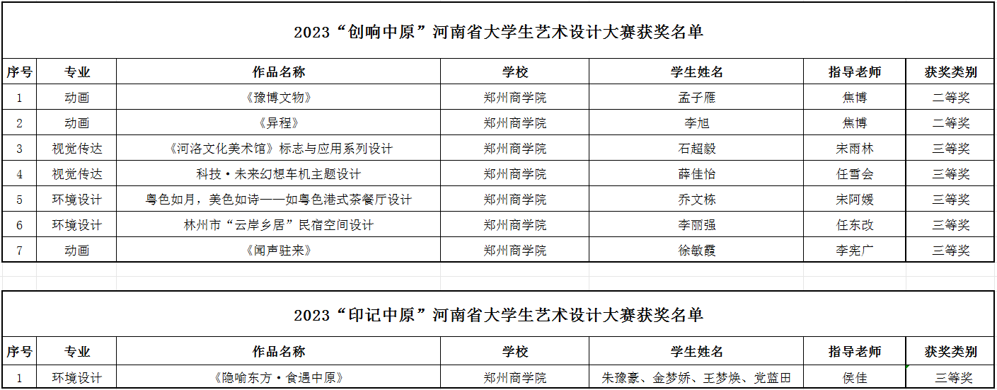 近日,由河南省教育厅举办的2023“创响中原”“印记中原”河南省大学生艺术设计大赛结果出炉。pg电子官方网站师生再获佳绩,斩获二等奖2项,三等奖6项。