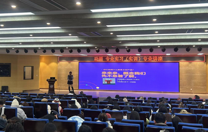 12月27日,动画专业在Z楼报告厅开展专业实习讲座,邀请到了郑州椋琳平面设计工作室的贺佳宝、无迪两位专业导师,针对动画专业的行业现状进行了分析,强调了IP运营维护在动画行业的商业转化中重要地位,又对动画行业的商业运作模式和创业形式进行分享,最后为同学们进行了自主创业的答疑。
