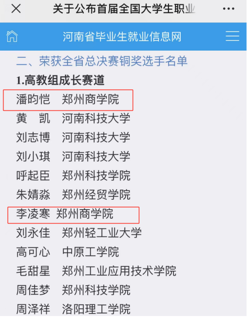 近日,首届全国大学生职业规划大赛河南省豫西赛区在河南科技大学举办,大赛以“筑梦青春志在四方,规划启航职引未来”为主题,旨在加强高校生涯教育和就业指导,增强大学生的生涯规划意识,指导学生做好就业准备,促进高校毕业生高质量充分就业。我院22级动画专业的潘昀恺和李凌寒同学凭借出色的表现,从众多参赛选手中脱颖而出,斩获高教组成长赛道铜奖。