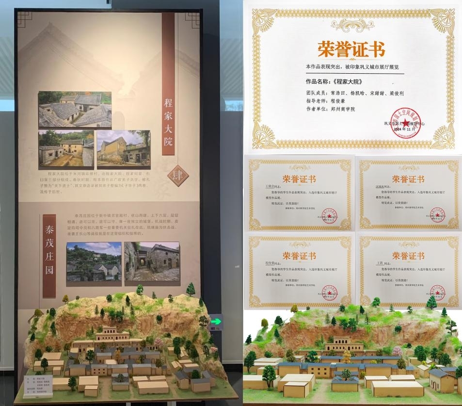 在本次展览中,由程俊豪老师指导,常浩田、杨凯晗、宋甜甜、梁俊利四位同学制作的“程家大院”建筑模型被收录并正式在印象巩义·城市展厅一楼展览,该模型不仅是对传统建筑艺术的展示,更是传承地方文化的有力载体。