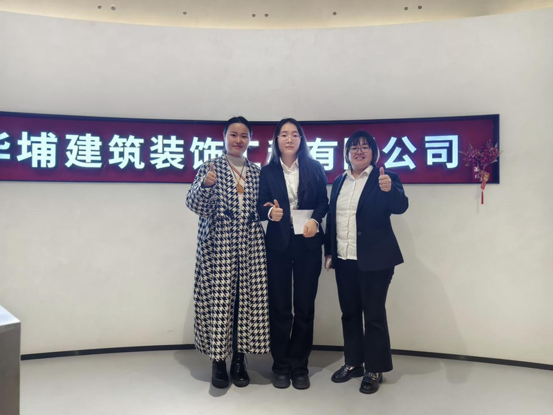 随后,周奕菲老师一行人来到了华埔建筑装饰工程有限公司。该公司以其卓越的设计能力和施工品质在业界享有盛誉。在参观了学生的工作环境并听取了企业导师对学生表现的反馈后,周老师对学生的快速成长感到欣慰。她强调:“设计是心灵的表达,每一件作品都应承载着你们的情感与思考。希望大家珍惜这次实习机会,将课堂所学与实际项目紧密结合,不断提升自己的设计思维与实践能力。”