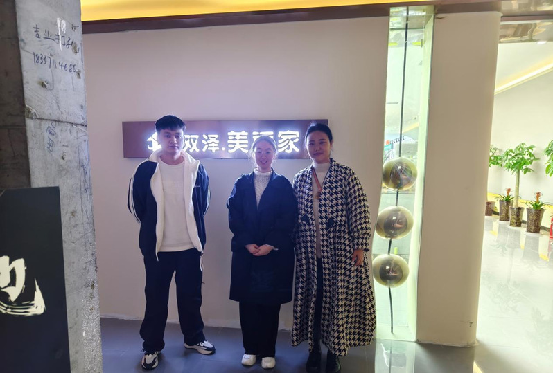 最后一站,周奕菲老师一行人抵达郑州双泽美丽家匠心建筑工程有限公司。这里,学生们正参与室内装修项目的规划与执行,亲身体验从设计到施工的全过程。周老师与学生们亲切交谈,了解他们在实习中的所见所闻、所感所悟。她激励学生说:“勤奋是通往成功的阶梯,无论是艺术的哪个领域,都需要我们脚踏实地,不断探索与创新。希望大家保持这份热情与努力,用双手创造出更多美好的居住空间。”