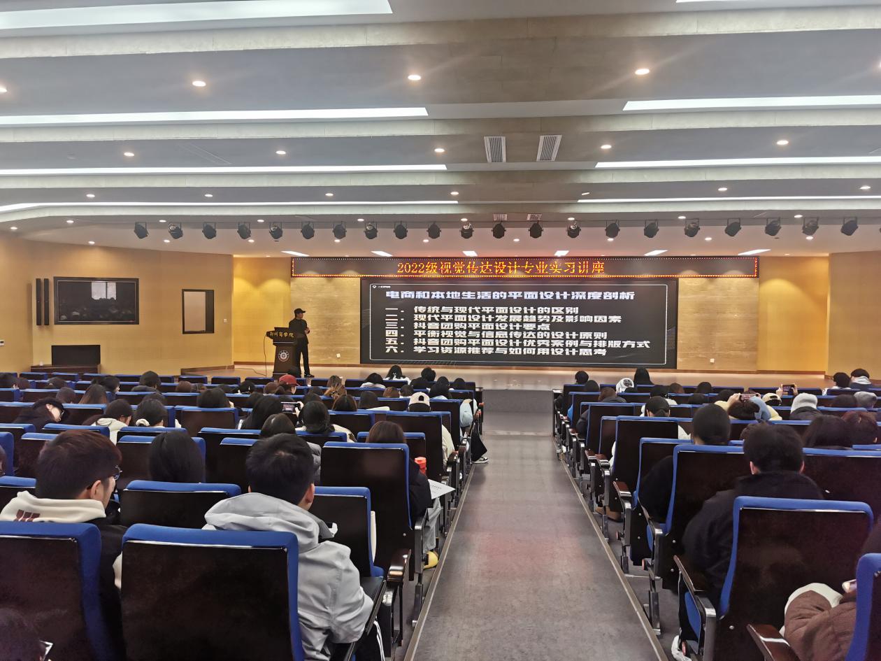 在艺术与科技交汇的新媒体时代背景下,艺术学院于2024年12月9日成功举办了一场以“新媒体时代下的平面设计密码”为主题的视觉传达设计专业发展前沿讲座。本次讲座邀请了河南省一灯网络科技有限公司的CEO郭贝贝作为主讲嘉宾,为师生们带来了一场精彩纷呈的知识盛宴。