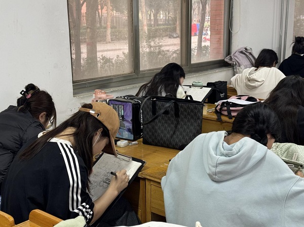 在考试现场,学生们表现出了极高的专业素养与备考热情。他们仔细阅读题目要求,一丝不苟地进行构思与创作,充分展现了他们扎实的专业基础和积极向上的备考态度。整个考场弥漫着紧张而有序的氛围,每一位考生都全力以赴地完成着自己的作品。