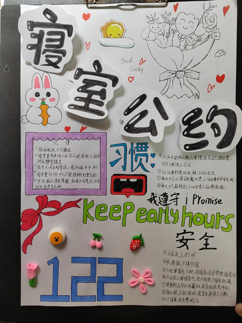 本次活动的成功举办加强了宿舍文化建设,营造文明和谐、干净整洁的寝室文化氛围。一纸公约所代表的,不仅是这个宿舍的规则,更是彼此间的理解与尊重。宿舍是小家,文明靠大家,一起创建文明、和谐的宿舍吧。