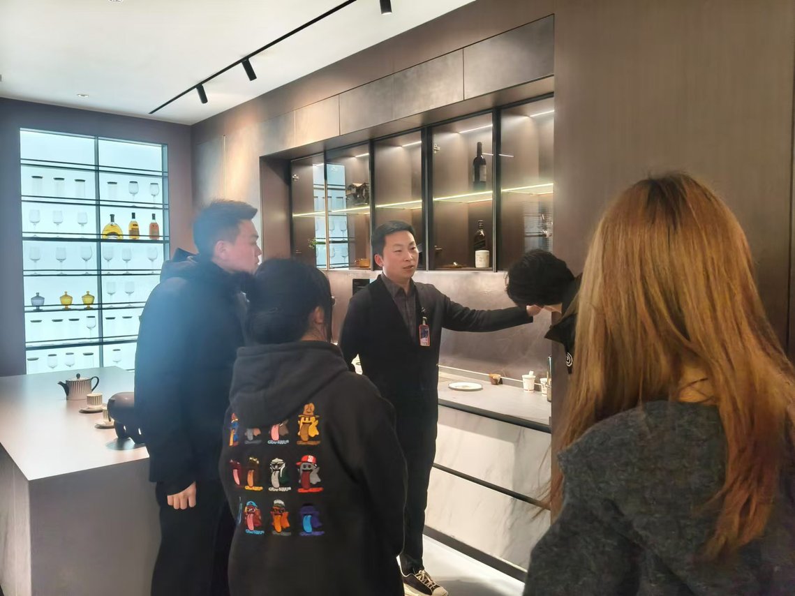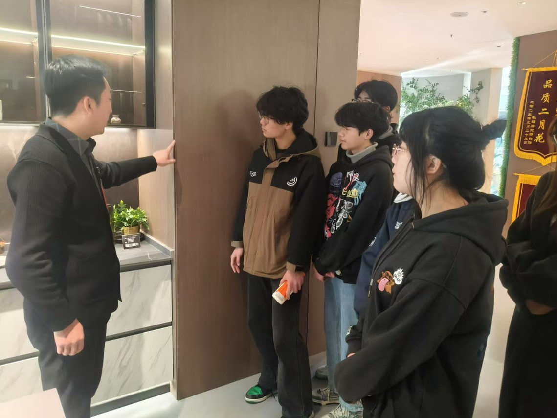 参观结束后,师生们迎来了与二月花装饰公司苏总面对面交流的宝贵时刻。苏总以自身丰富的行业经验为切入点,分享了公司从创立之初到如今在市场中站稳脚跟的发展历程,分析了当下家装行业的市场趋势和挑战,如环保材料的广泛应用、个性化设计需求的增长等。在互动环节,学生们踊跃提问,问题涵盖了从在校学习如何平衡理论与实践、环境设计专业的就业方向,到行业未来创新发展方向等多个层面。苏总逐一耐心解答,鼓励学生们在大学期间要扎实学好专业基础课程,注重培养自身的审美能力和创新思维,积极参与实践项目,提升解决实际问题的能力,为未来投身行业做好充分准备。