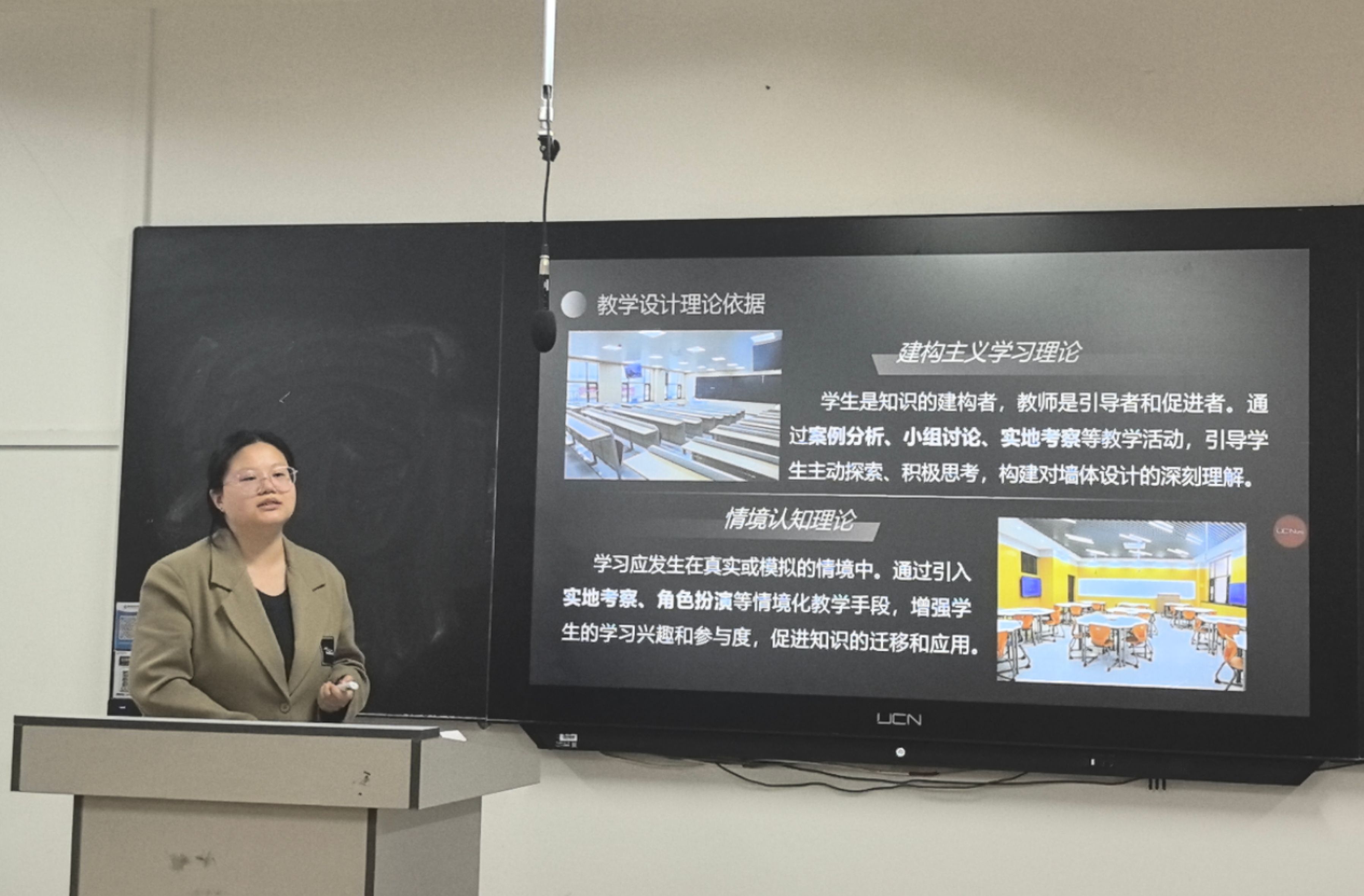 紧接着的教学设计展示环节,教师们充分利用多媒体手段,通过PPT、视频、动画等多种形式,将教学理念、课程内容与教学方法融为一体,生动形象地展示了他们的教学创意和实践。现场的教学演示让评委和导师们直观感受到了教师们的教学风采和课堂掌控力。