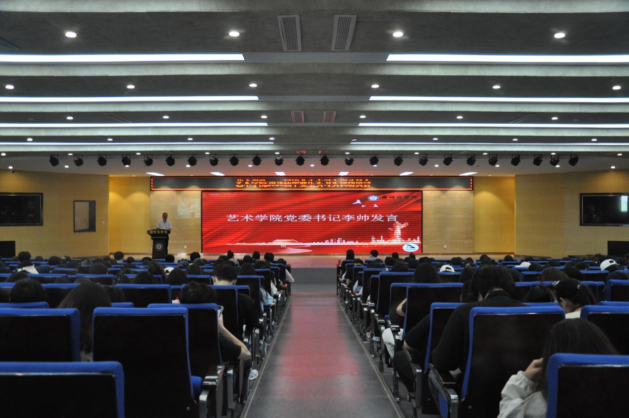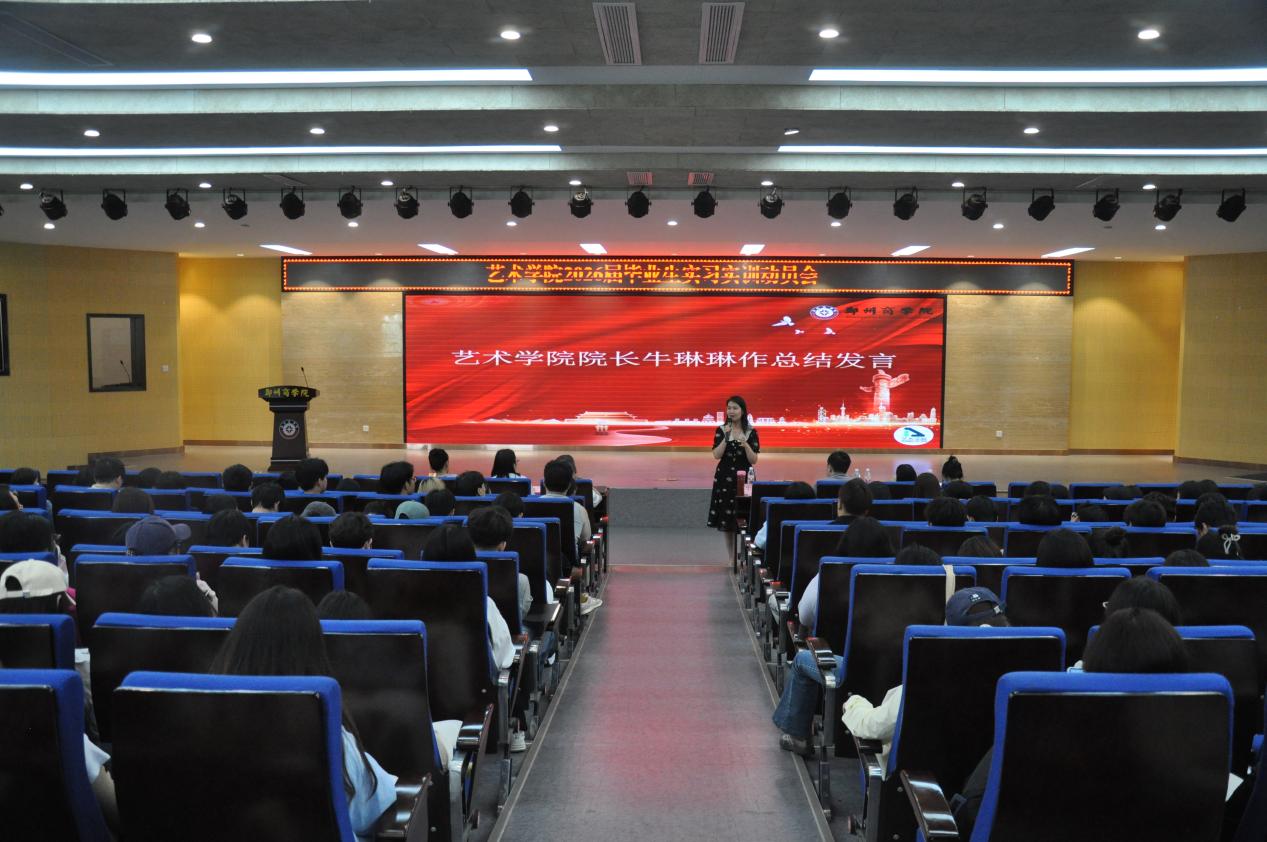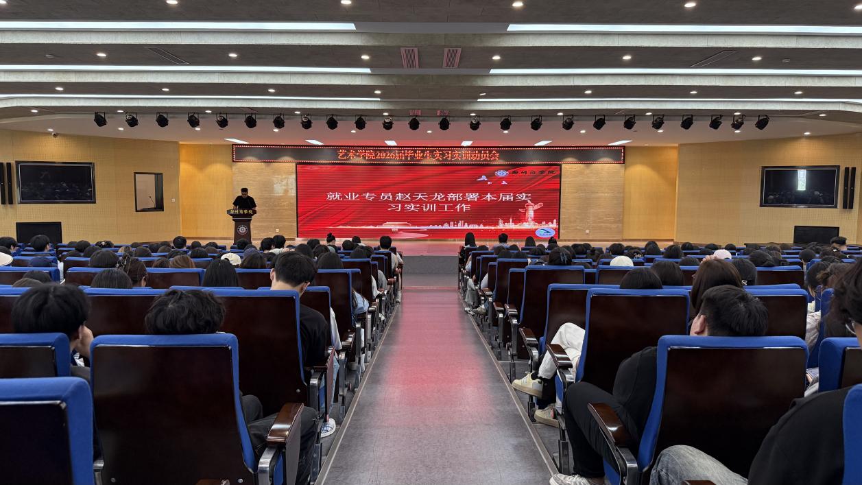 为强化毕业实习管理、助力学生高质量就业,5月28日15:00,艺术学院于自力楼三楼报告厅召开2026届毕业生实习实训动员大会。艺术学院院长牛琳琳、党委书记李帅、22级年级长刘颖平及全体辅导员,2026届毕业生参会。会议由就业专员赵天龙主持。