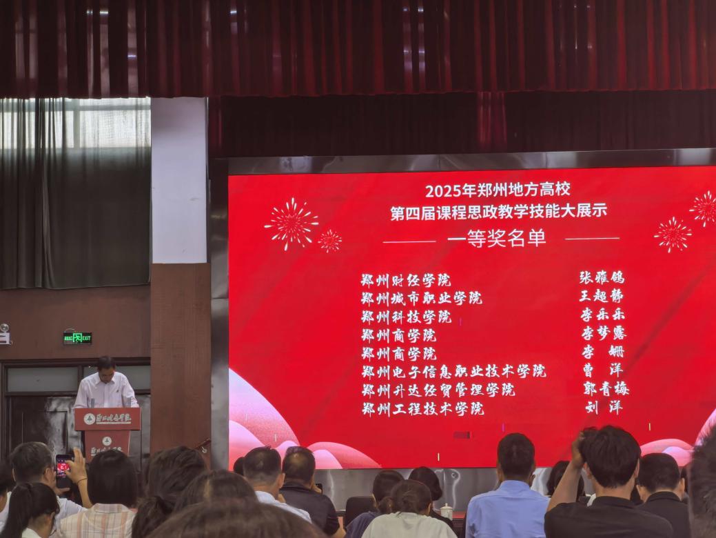 6月,喜讯不断传来。李梦露老师参加2025年郑州地方高校第四届课程思政教学技能大赛。她再次凭借扎实的教学功底和独特的思政教学设计,一路过关斩将,荣获一等奖,为学校和学院赢得了更高荣誉。