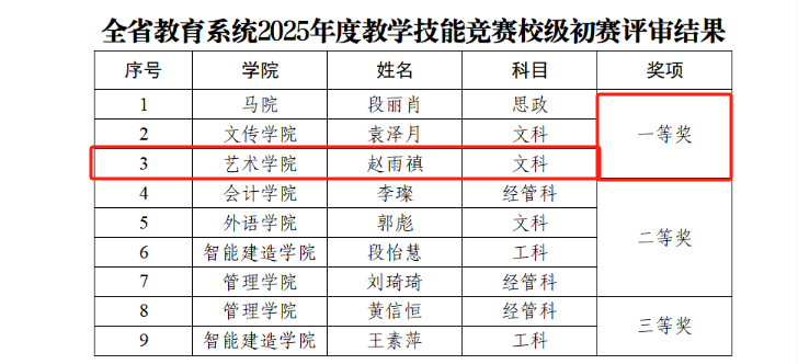 在2025年度全省教育系统教学技能竞赛校级初赛中,赵雨禛老师作为入职不久的优秀青年教师,凭借扎实的专业功底和精湛的教学技艺,在讲台上从容自信、发挥出色,最终荣获文科一等奖。比赛中,她以新颖的教学设计、生动的课堂呈现,将专业知识与教学技巧完美融合,其精彩表现,正是我院教师深厚专业素养和精湛教学技艺的又一有力证明。