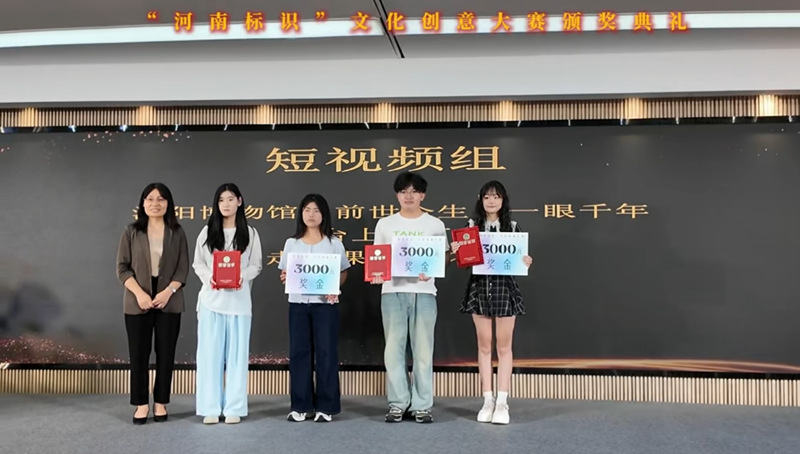本次大赛,pg电子官方网站艺术学院的师生们以扎实的创作功底和持续不断的努力,横跨文创设计与短视频创作两个赛道,一路过关斩将。经过前期初评、复评,网上大众投票和评委专业评审等严格环节,最终李凌寒、王浩翔两位同学的作品《前世今生,一眼千年》荣获了三等奖;王佳惠的《时光的信使》、王亭儿的《杜锦——牡丹交互语言毛绒娃娃》荣获了优秀奖。同时,艺术学院张斌、贺丹丹两位指导老师紧扣赛事规则与要求,凭借出色的指导,荣获“河南标识”文化创意大赛“最佳指导老师”称号,为学院的发展贡献了一份坚实力量。
