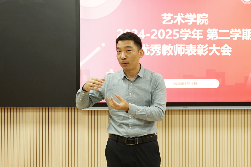 2025年9月18日,艺术学院2024-2025学年第二学期优秀教师表彰大会在艺术楼103阶梯教室隆重举行。董事长助理陈宗纬、副校长刘升阳及艺术学院全体教职工共同出席,院长牛琳琳主持大会。