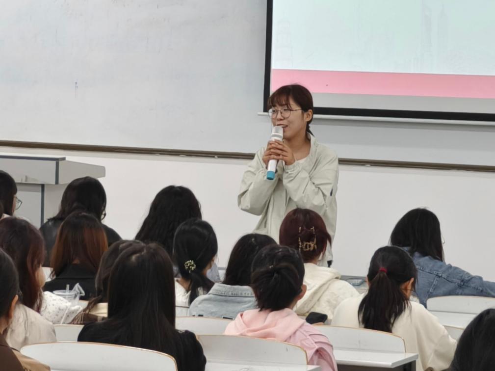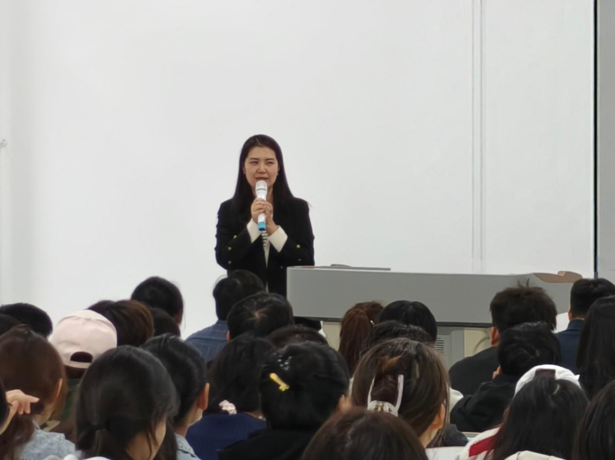 最后,为帮助新生更具象地规划个性化发展路径,大会针对学院的分类教学进行了补充说明。工作室组的靳瑜哲老师详细介绍了相应资源,鼓励同学们以赛促学,在实战中快速成长。考研组的马微老师则阐述了特色课程,指出学院助力夯实学生英语基础,为学生未来升学提供清晰指引。