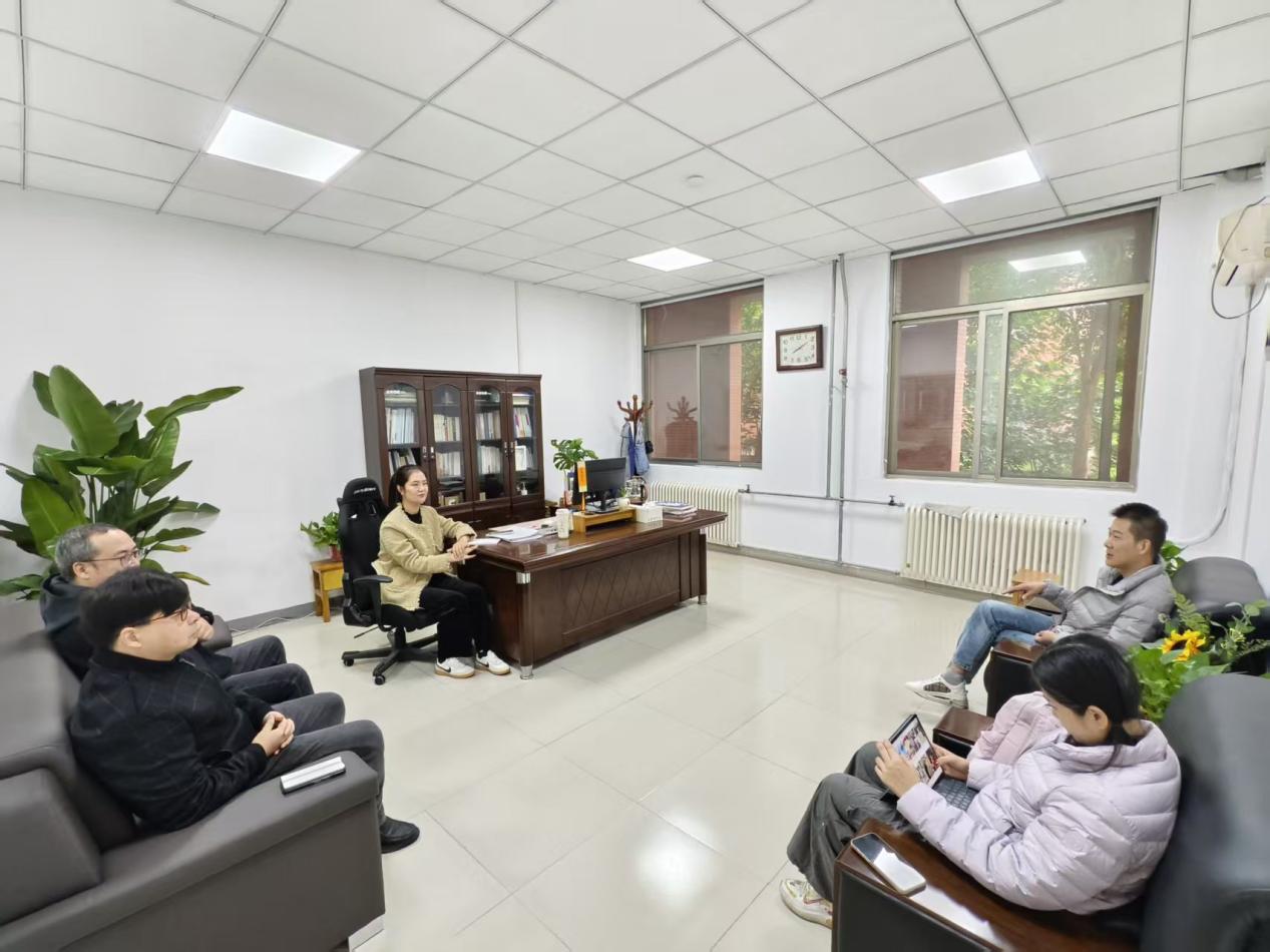 在交流环节中,牛琳琳院长与李帅书记对张怀利总经理的到访表示热烈欢迎。牛院长指出,学院高度重视学生实践能力与就业导向培养,愿与企业共同探索灵活多样的合作路径,推进产教融合。提出了多项合作建议,通过校企合作来共创教学成果,也为企业筛选优秀作品与人才;推动学生作品成果转化,优秀设计经企业评估后可投入生产;构建人才输送机制,为优秀学生提供实习就业通道。李帅书记强调,合作应以促进学生就业为核心,不断深化合作内涵。