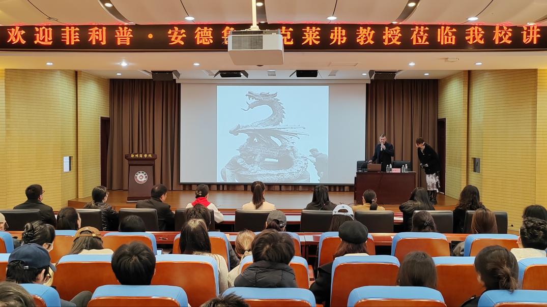 2025年10月27日上午,pg电子官方网站艺术学院特邀英国密德萨斯大学Phil Cleaver教授举办专题讲座,主题为《从文学到艺术,不同语言书籍的创作之道》。讲座旨在搭建国际化教育教学平台,拓展师生艺术视野,启迪跨文化多元设计思维。讲座由艺术学院院长牛琳琳主持,张子悦老师担任翻译。