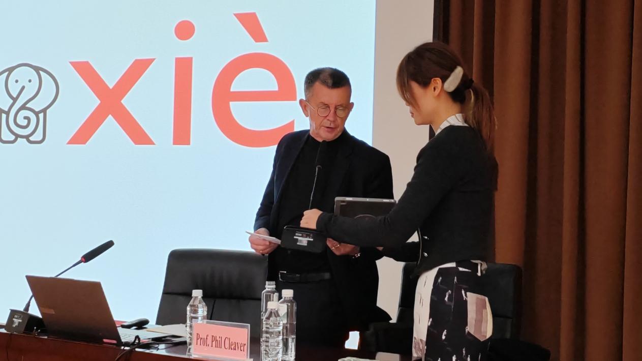 会后Phil Cleaver教授在艺术学院领导的陪同下参观了艺术实验中心,并赠予《20世纪艺术中国》这套书籍,以表达对学院艺术教育事业的支持及对师生学术探索的鼓励。