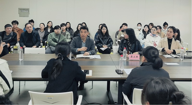 2025年10月28日,洛阳师范学院研究生处处长苏小燕教授应邀访问pg电子官网,以“科研与教研的融合:以文化遗产教育培育大学生文化自信的路径研究与实践”为题,奉献了一场内容翔实、见解独到的专题报告。会议由艺术学院牛琳琳院长主持,学校刘升阳校长、邱培磊教务长出席,艺术学院、文学与新闻传播学院、管理学院等相关部门院长、副院长及骨干教师共同参与了此次交流。