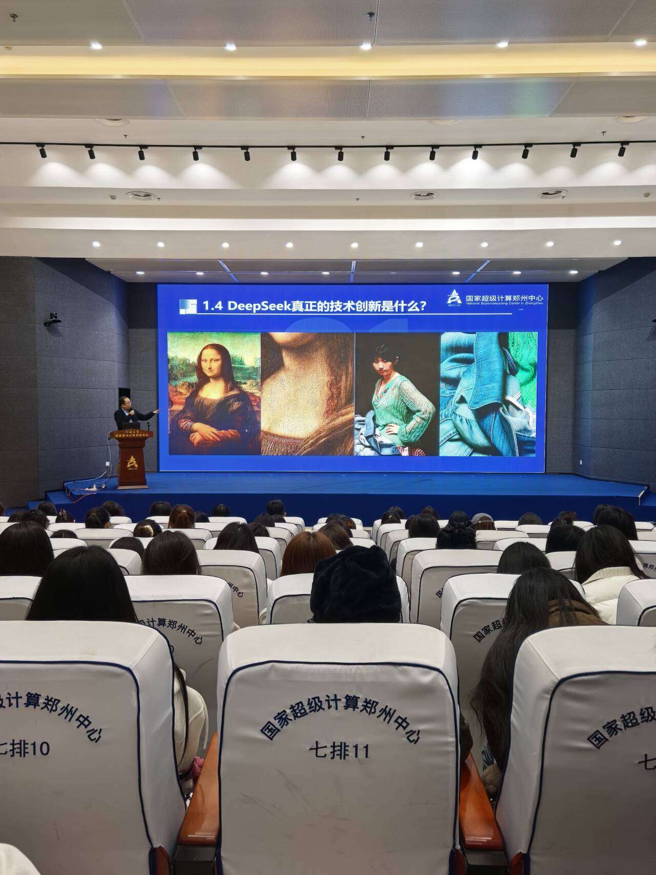 随后,郑州大学资深讲师带来两场精彩报告:《解密“嵩山”之心:从中国芯到液冷黑科技》系统解读了超级计算机的架构与核心技术,《DeepSeek概述和大模型应用》则详细介绍了DeepSeek的访问方式、基本功能及多维应用场景,尤其聚焦其在设计领域的创新应用,清晰阐释了设计专业与AI的紧密关联。两场报告深入浅出,让同学们全面了解了超级计算机、大数据、人工智能的发展原理与应用价值,深刻认识到科技创新对人类生活的深远影响。此次活动不仅增进了学生们对科技创新的认知,开拓了学术视野,更让自己意识到身处新时代,肩负着传承与创新的使命。