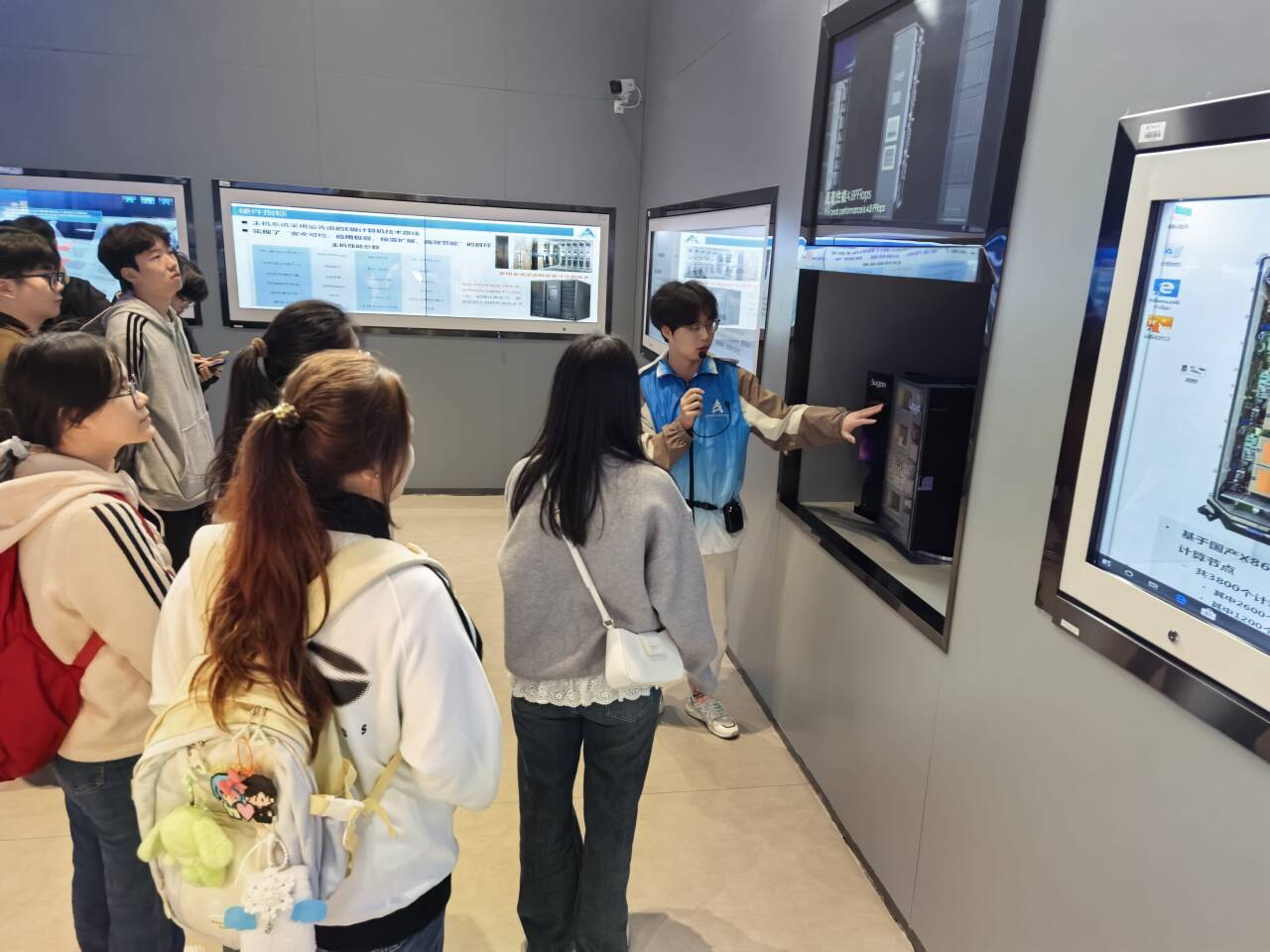 为拓宽学生学术视野,提升专业实践能力,2025年11月4日,我院23级视觉传达设计专业333名学生在专业教师的带领下,先后前往国家超级计算郑州中心与郑州记忆・油化厂创意园,开展了一场兼具科技深度与艺术温度的实习活动。上午,师生一行抵达国家超级计算郑州中心。作为国家在河南部署的首个重大科学计算装置,该中心对河南省区域经济社会发展和产业转型升级具有重要战略意义,也是国内领先的高性能计算与大数据服务平台。在中心工作人员的引导下,同学们首先参观了中心展馆,直观感受了超级计算机强大的数据处理能力和实时监控系统的精密运作,近距离触摸科技硬核力量。