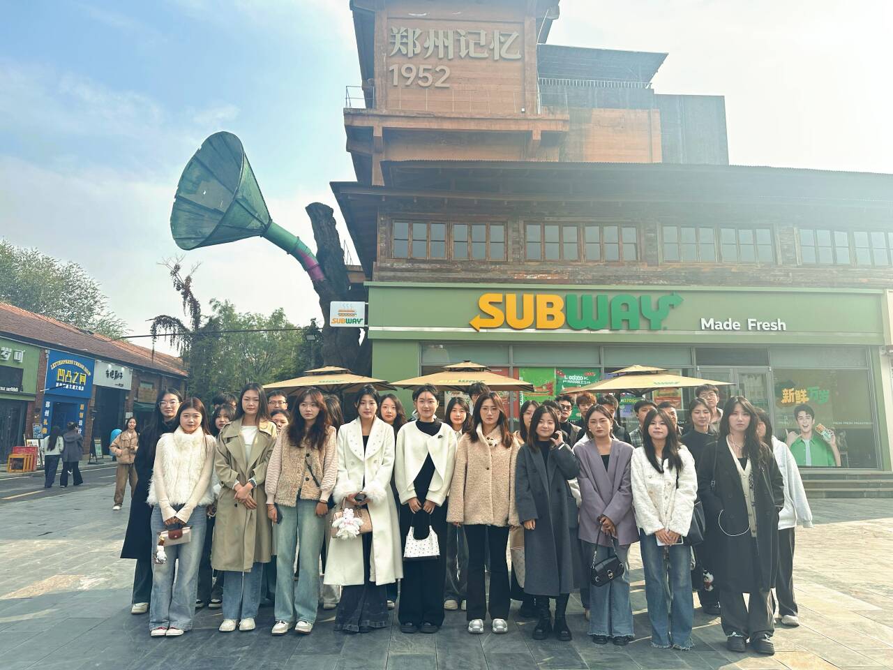 下午,师生团队转场至郑州记忆・油化厂创意园,开启一场艺术调研之旅。作为充满工业风情与创意活力的文化园区,这里成为同学们汲取艺术灵感的重要源泉。调研过程中,同学们围绕专业核心需求,重点考察了园区整体视觉导视系统设计、入驻商家品牌视觉导视系统、园区内的艺术装置作品,同时对文创产品的类型、表现形式及材质运用进行了系统梳理与记录。通过实地观察、交流探讨,同学们积极收集专业创作素材,深入挖掘创意设计的多元表达,为后续的艺术创作积累了丰富灵感。​