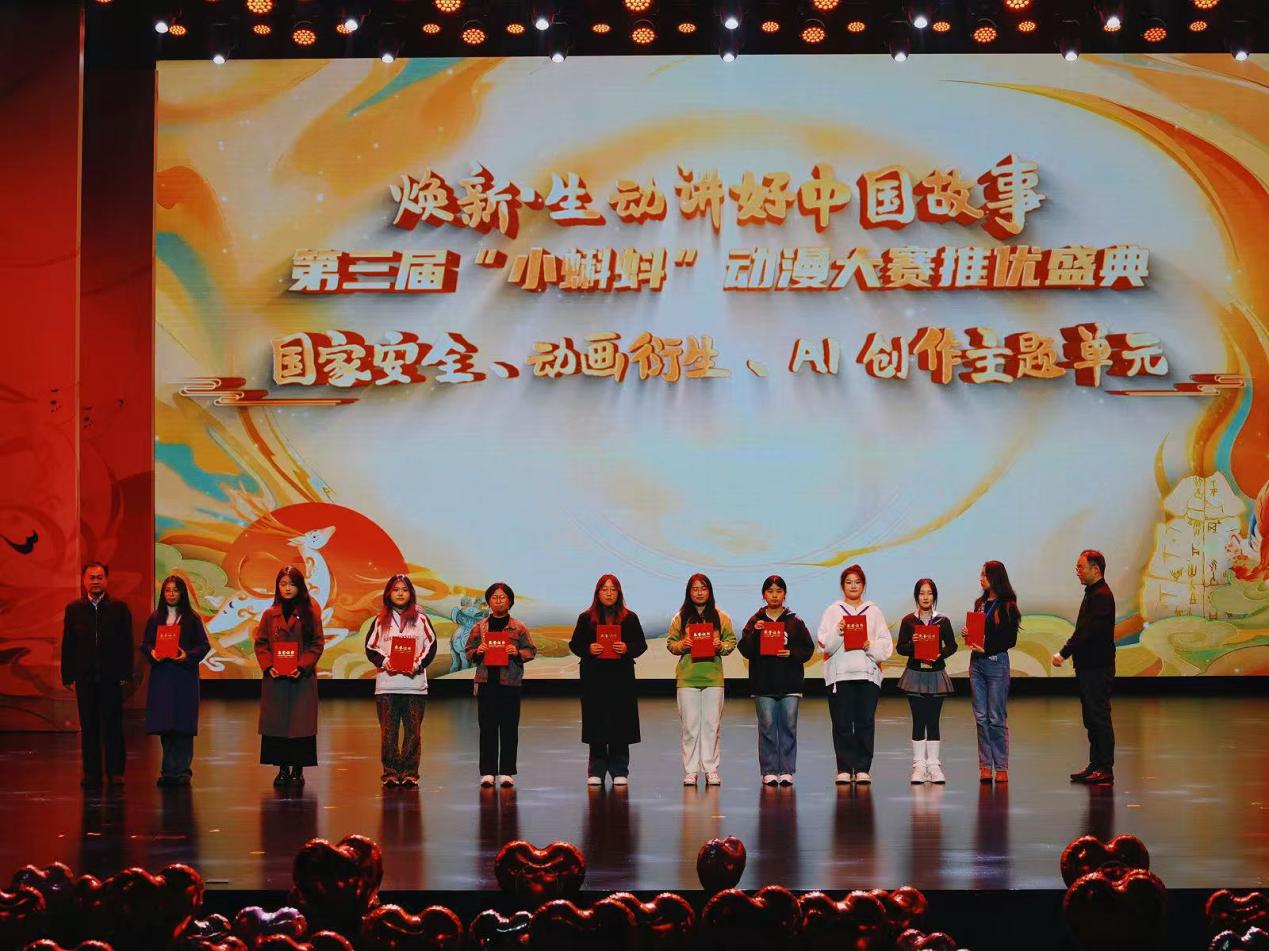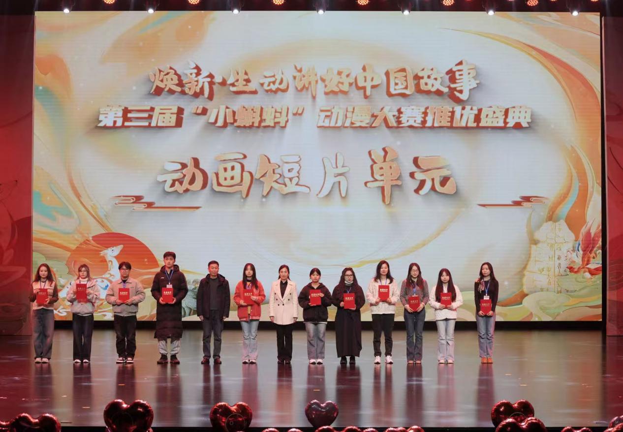 近日,第三届“小蝌蚪”动漫大赛推优盛典暨“国产动漫焕新行动”启动仪式在中国文字博物馆隆重举行。作为全国青年动漫创作的重要孵化器和风向标,本次活动汇聚了全国各地的动漫界专家、行业从业者及高校师生代表。pg电子官方网站艺术学院师生受邀参会,凭借对中国传统文化的深度诠释与扎实的创作实力,在动画短片、动漫衍生、AI创作等赛道脱颖而出,7部作品斩获多项荣誉,彰显了艺术学院动漫专业教育的卓越成效。