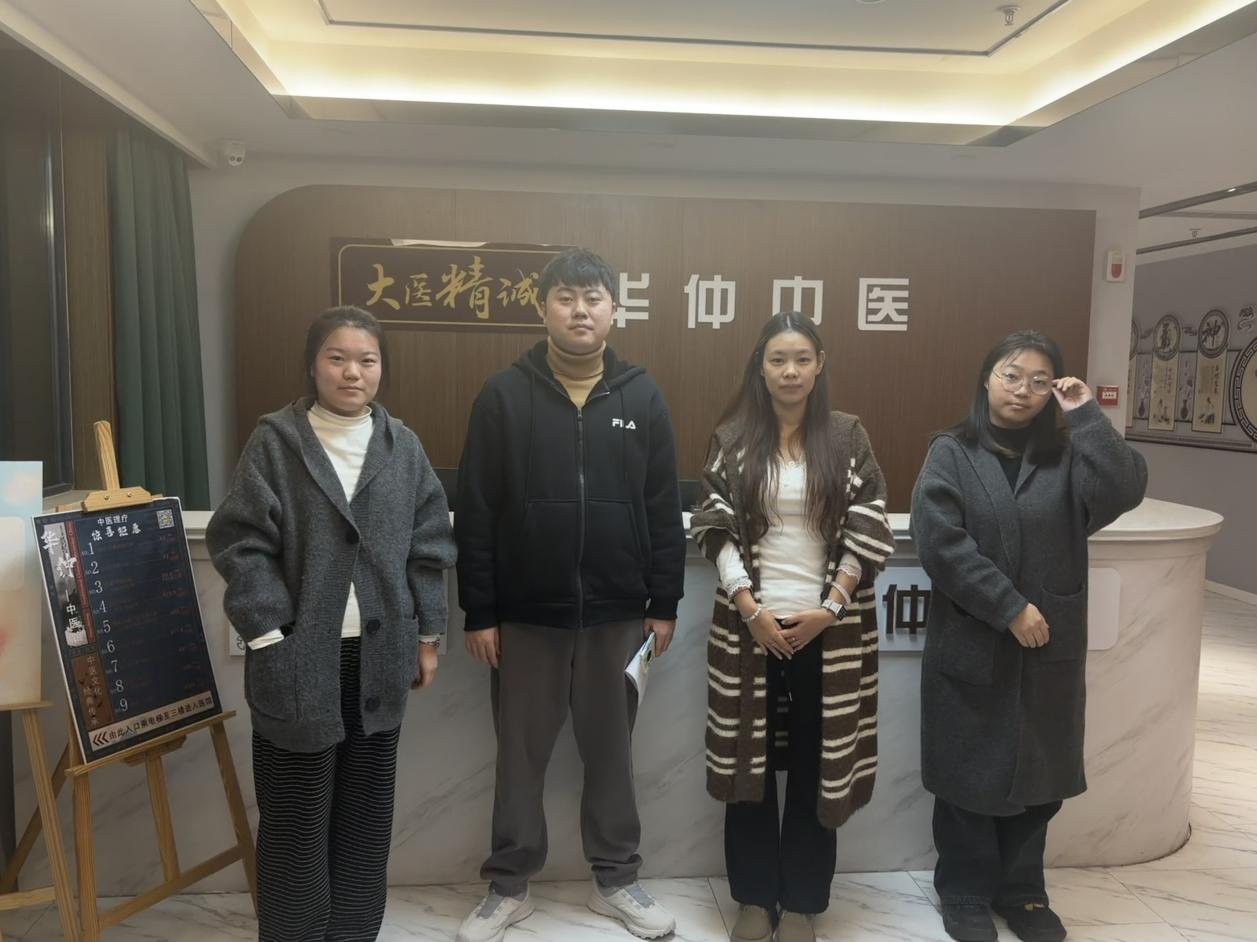 为深入了解用人单位对人才的实际需求,拓宽学生实习与就业渠道,同时切实关怀在外从事实习学生成长与发展,2025年11月12日,艺术学院辅导员饶椿昊前往郑州华仲中医馆,开展 “访企拓岗” 专项调研,看望了正在该单位担任新媒体运营实习生的三名我院学生。