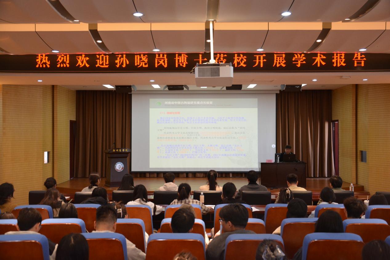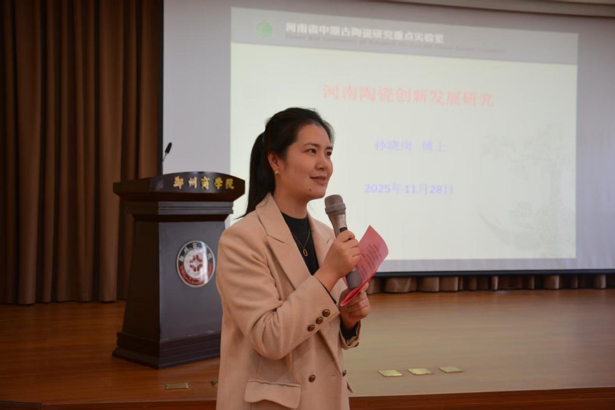 2025年11月28日下午,在校图书馆报告厅,河南省工艺美术协会副会长,河南省非物质文化遗产委员会委员孙晓岗博士为艺术学院师生带来一场题为《中原陶瓷产业升级背景下产品设计与专业建设双向赋能》的精彩学术报告,本次报告也是艺术学院《从河洛出发》第四场“河洛瓷韵”的系列活动。报告由艺术学院院长牛琳琳主持,艺术学院副院长张斌、产品设计教研室主任张振中以及产品设计专业师生代表参加本次报告会。