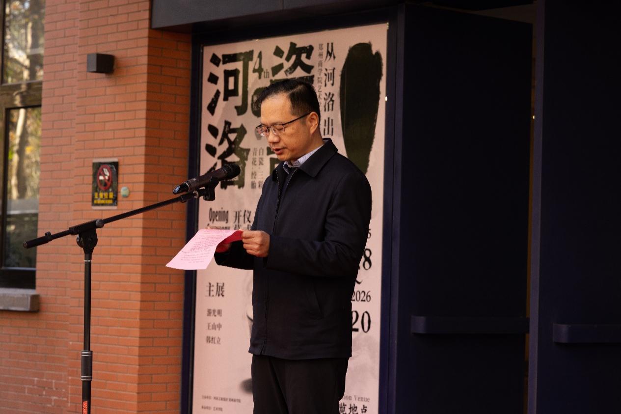 首先,pg电子官方网站副校长刘升阳代表学校致辞。他强调,学校扎根河洛文化核心地巩义,打造“从河洛出发”系列活动,深化校企合作,以展览为载体推动文化传承与美育融合,让学生在传统文化的浸润中成长,并预祝本次展览圆满成功。