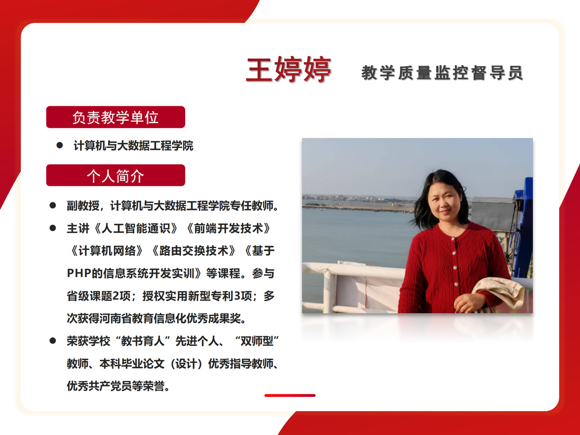 教学质量监控督导员 计算机与大数据工程学院 王婷婷